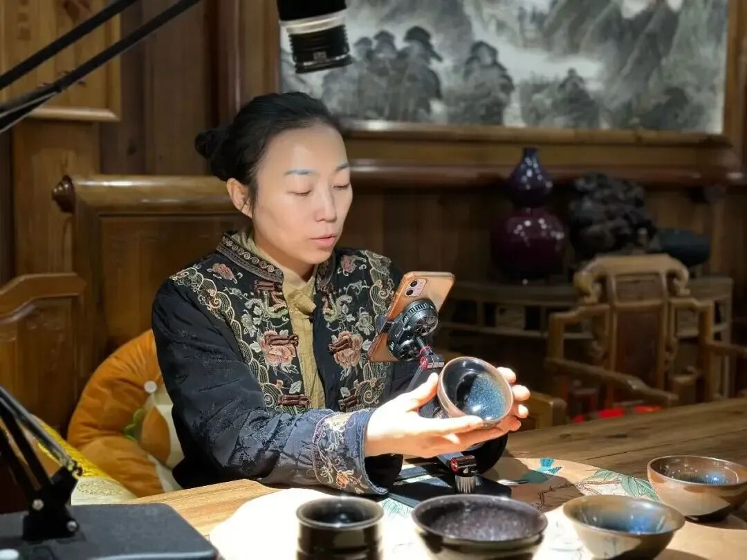 从单一手艺人转型,她在“女主播”的角色下探索直播行业生态,试水直播带货,给粉丝们展示建安盏的宋韵之美;