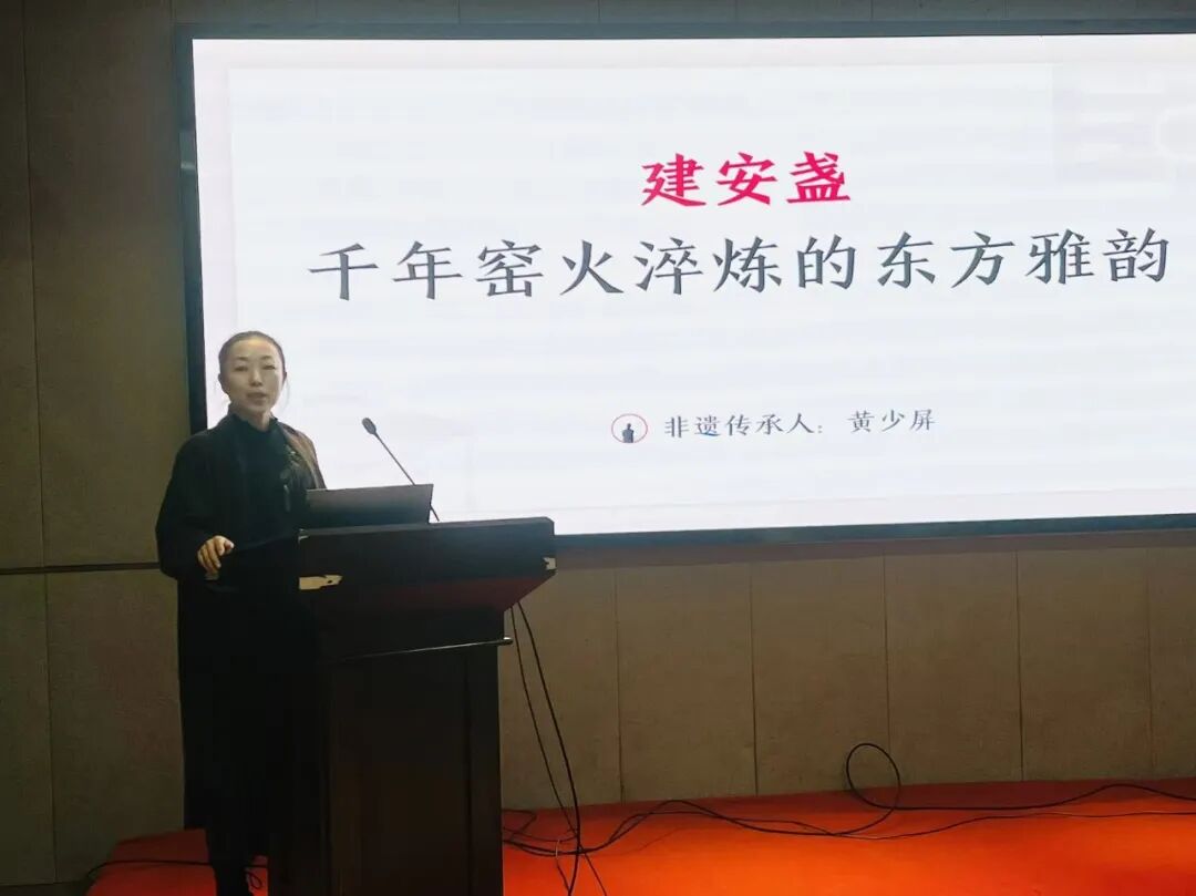 在非遗传承人分享交流会上,黄少屏老师给大家系统地介绍了建安盏的发展历史、原材料及烧制技艺,也分享了对未来建安盏技艺传承和发展的构想。在与传承人们跨领域技艺交流的过程中,黄少屏老师获益良多。